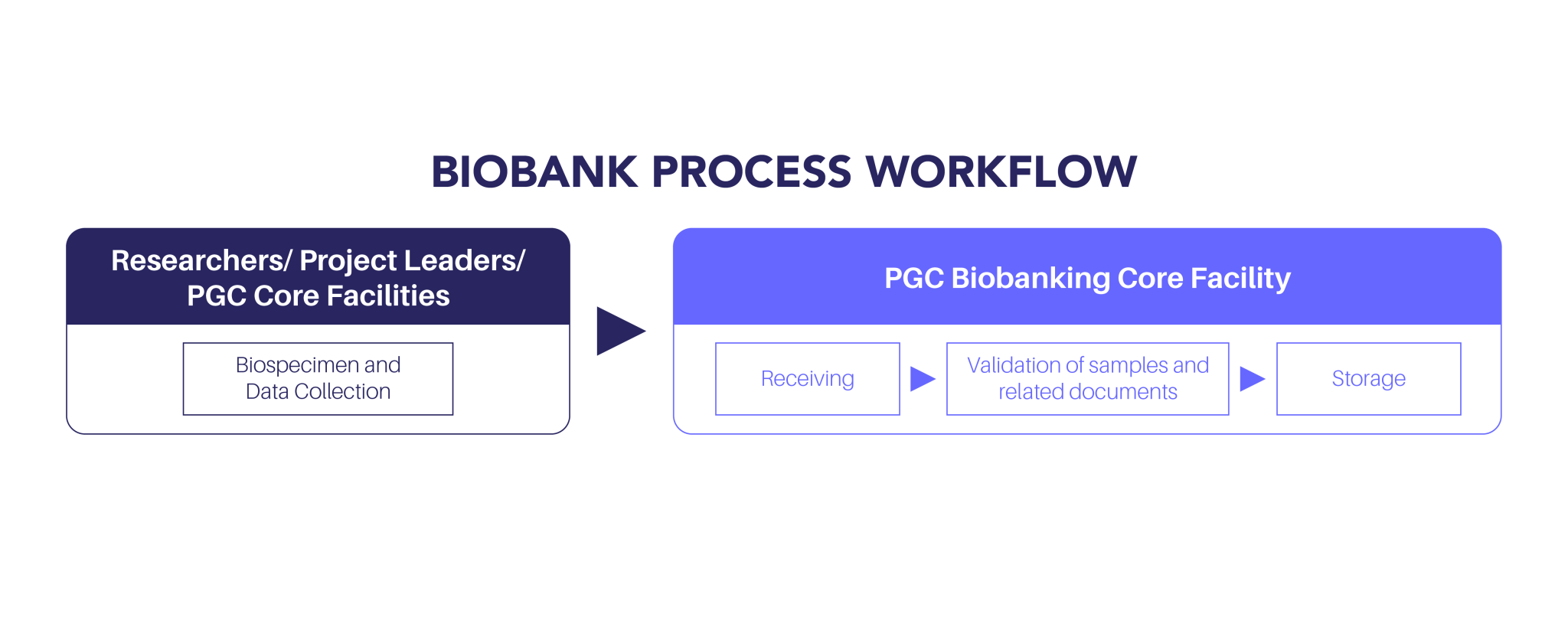 A physical repository of biospecimens obtained from humans, plants, animals, and environmental samples and their derivatives (e.g., DNA, RNA, proteins, metabolites, processed blood, cells, microbes, and viruses). The Biobank Core Facility provides services for receiving, processing, storing, and distributing biospecimens and their derivatives to investigators for research and other relevant purposes.